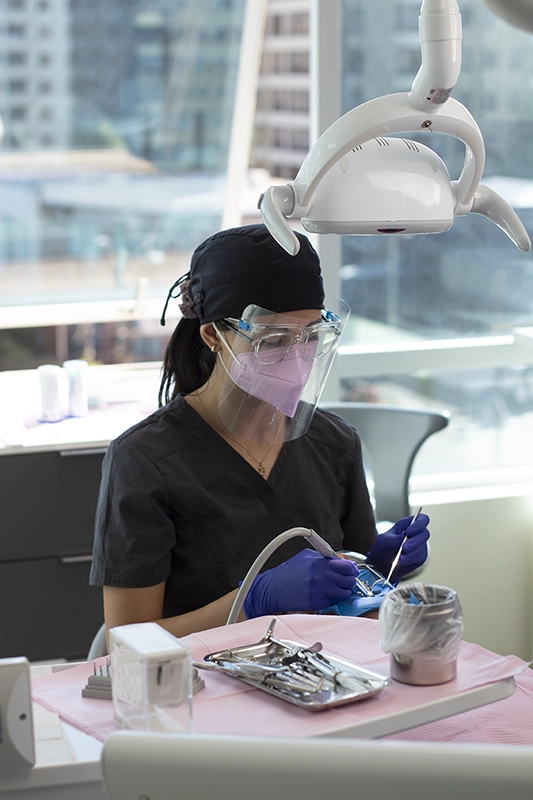 El proceso para colocar las carillas dentales involucra la preparación de los dientes naturales, tomando una impresión dental, y finalmente colocar las carillas con un cemento dental especial.